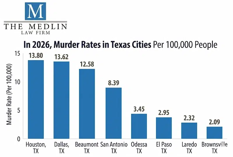 Houston stays at the center of this topic because the numbers are high from both angles. The city has the highest violent crime total in Texas, and its violent crime rate is also well above the statewide average. That keeps Houston near the top whether someone looks at rate, raw volume, or both together.